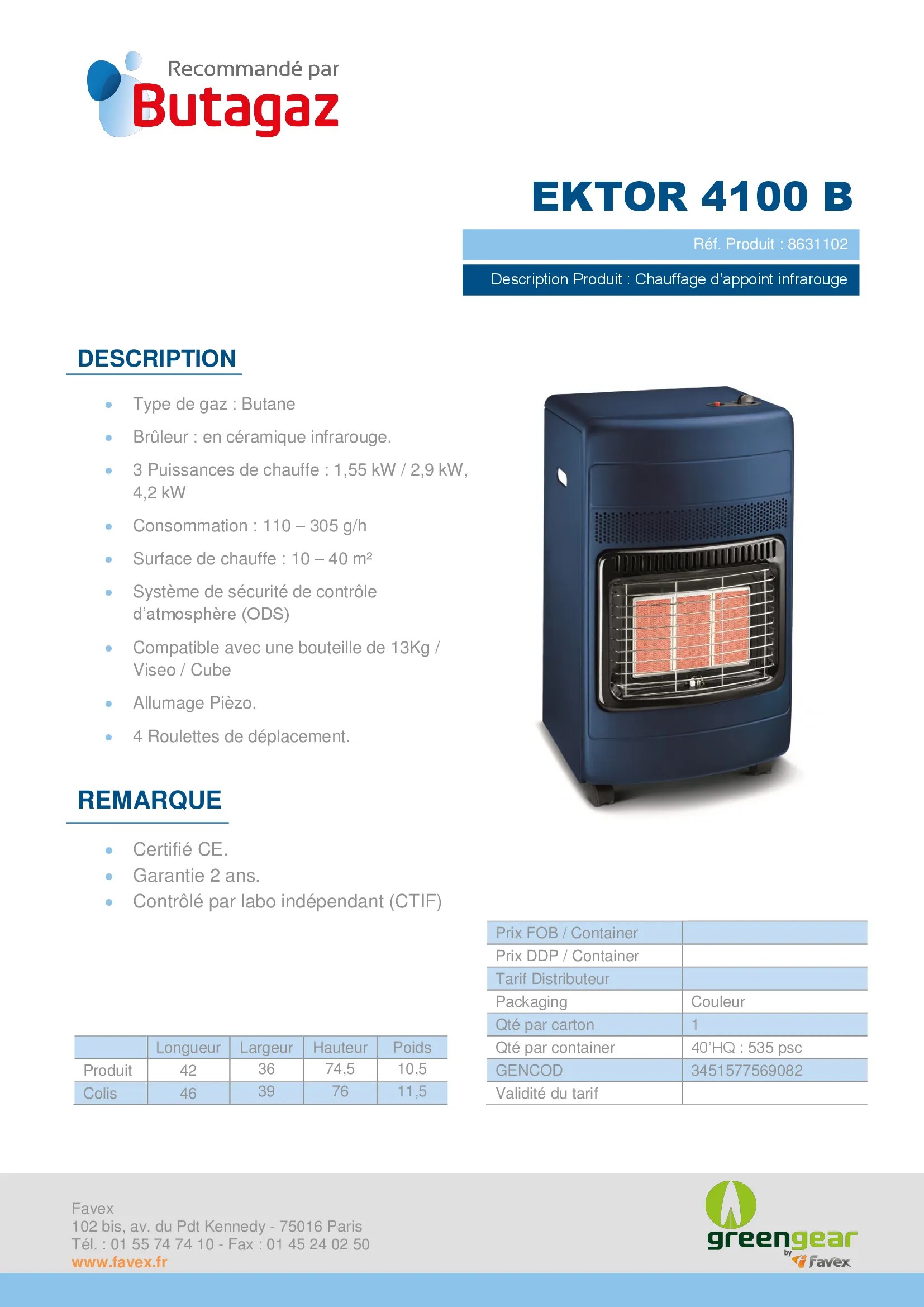 Favex Recommande Par Butagaz Ektor Design 4200 Watts Chauffage